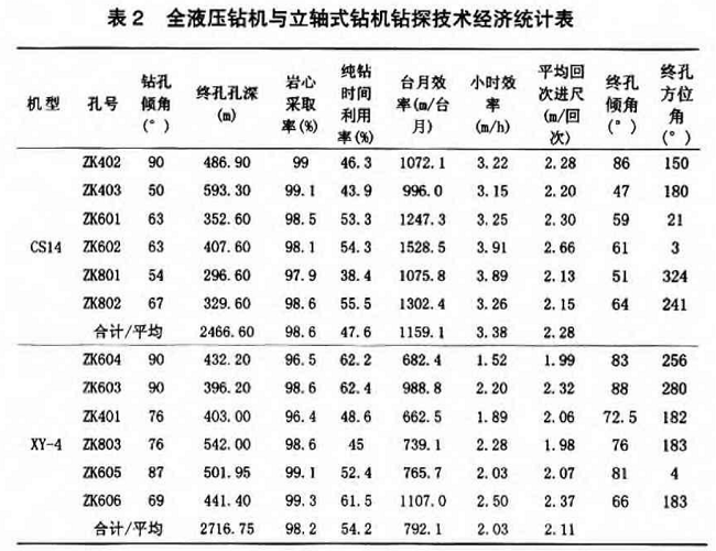 實(shí)踐表明,在同一礦區(qū)使用動(dòng)力頭鉆機(jī)與立軸式鉆機(jī)施工。巖心采取率和鉆孔彎曲度這兩項(xiàng)質(zhì)量指標(biāo)都達(dá)到了較高的水平,且前者略?xún)?yōu)于后者。
