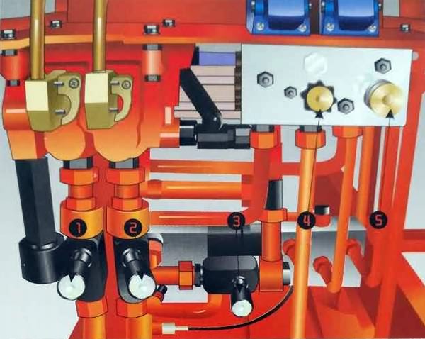 1、正轉(zhuǎn)背壓閥;2、起拔背壓閥;3、起拔背壓閥;4、卡盤夾持器聯(lián)動閥;5、減壓閥