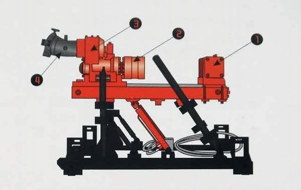 1-夾持器;2-液壓卡盤;3-齒輪箱;4-液壓馬達