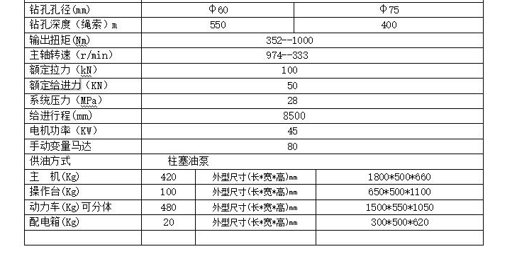 6.液壓系統(tǒng)采用雙泵雙系統(tǒng)供汕方式設計,鉆機功率匹配合理。