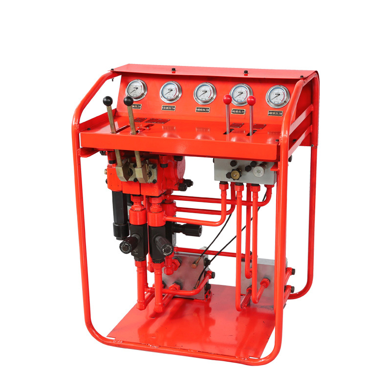 操作臺(tái)是鉆機(jī)的控制裝置。由各種控制閥、壓力表和管件組成。鉆機(jī)的回轉(zhuǎn)、進(jìn)給、起拔與卡盤、夾持器的聯(lián)動(dòng)功能是靠操縱臺(tái)上的閥類組合實(shí)現(xiàn)的。